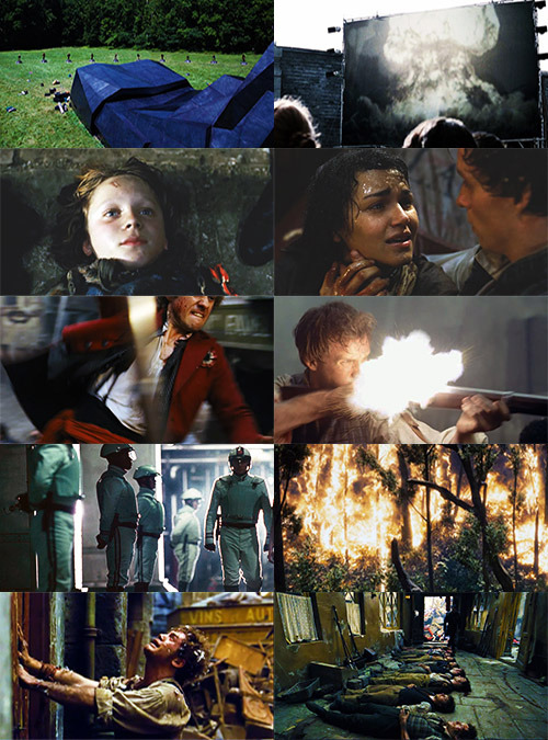 v. the people are scared. they stay in their homes. they don’t rise to meet the challenge. they don’t rewrite their own destinies. enjolras was wrong, and grantaire was right, but at the end of their lives, it didn’t seem to matter. they are shot in a public square by firing squad. enjolras dies holding a red flag and grantaire’s hand. it was supposed to be a symbol of their revolution-that-never was.