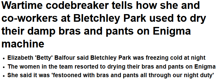 BP historian here: the Wrens (members of the Women’s Royal Naval Service) dried their underwear on Colossus, arguably the first computer, which took up most of a room, and got very warm. An Enigma machine, which is about the size of a typewriter, isn’t going to work very well for knickers-drying purposes. Using a computer designed to break German ciphers though – go for it.