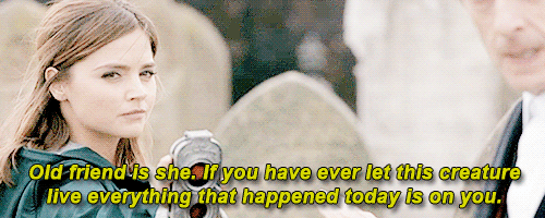 December 15, 2014 Overly Devoted Archivist Uncategorized clara oswald, doctor who, missy, the twelfth doctor 0 Comments timelordsfallnomore: Master: How many times over the years could you have killed me?Doctor: I don’t know… many times.Master: Yet you never did. How easy would it have been for you to kill me tonight?Doctor: I honestly don’t know if I could have done.(BFA #49: Master) Share this: Share on X (Opens in new window) X Share on Facebook (Opens in new window) Facebook Like this:Like Loading...