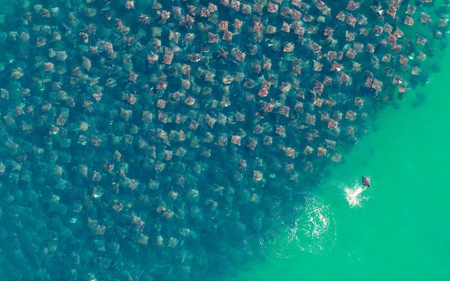 No one knows why the rays gather like this, whether to mate, herd prey or migrate or just for the sheer joy of being together.