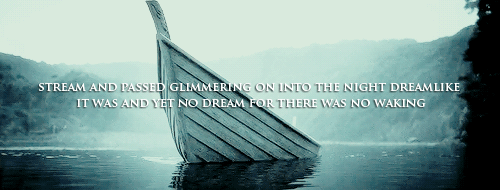 Then the boat turned towards me, and stayed its pace, and floated slowly by within my hand’s reach, yet I durst not handle it. It waded deep, as if it were heavily burdened, and it seemed to me as it passed under my gaze that it was almost filled with clear water, from which came the light; and lapped in the water a warrior lay asleep.