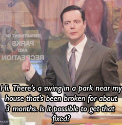 The man seeking Leslie’s help in replacing the park swing was played by Jon Daly from “Kroll Show,” who played the drunk Leslie chased out of the slide in the pilot (glimpsed briefly in the finale’s montage of the parks staff hard at work, Teddy Roosevelt-style).