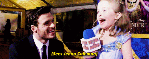 As the World’s Youngest Doctor Who Reviewer, Lindalee was not expecting to run into any stars of the hit BBC Television show on the night of Disney’s CINDERELLA World Premiere. But as The Prince himself (Richard Madden) took a few minutes to be interviewed by the 6 3/4 year old red-carpet reporter, Lindalee suddenly spotted actress Jenna Coleman who plays her favorite character ‘Clara Oswald’ on Doctor Who, who was waiting nearby for her real-life boyfriend, Richard. Having met Jenna twice already in both New York and London, Lindalee quickly ditched the opportunity to chat w/ the Prince to embrace and re-connect w/ her fellow Whovian. [x]