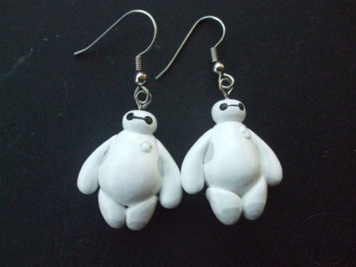 Lightweight earrings, pierced or clip-on, inspired by Big Hero 6 movie, Baymax the Nurse Robot. Made of Sculpey polymer clay, painted with acrylics and finished with glossy acrylic. They dangle from silver tone or gold tone metal clip-on or pierced plain earring fittings – you can choose pierced or clip-on. You can also choose silver tone or gold tone metal. If you don’t convo me a choice, then I will send a pair of silvertone pierced earrings. The drop on the earrings is approx. 1 ¼ inches below your ear lobe. Aren’t they cute? Great little gift to remember an extraordinarily entertaining movie! Special for any Disney fan.You have to see these earrings in person, they are so perfect in every way. Incredible details, and I don’t know how or why but for some reason they smell just like Disneyland.