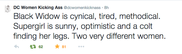May 15, 2015 Overly Devoted Archivist Uncategorized although black widow can be a comedic character too, black widow, just not in the same way, supergirl, yeah that 0 Comments pietrosilvrs: fangirljeanne: dcwomenkickingass Dropping truths about the problem with comparing Black Widow and Supergirl. Share this: Share on X (Opens in new window) X Share on Facebook (Opens in new window) Facebook Like this:Like Loading...