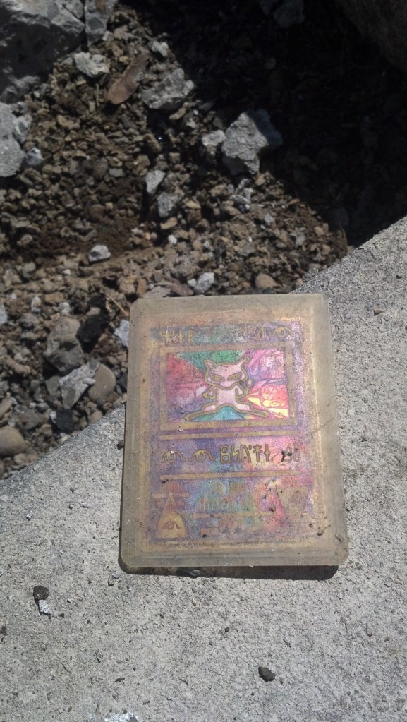 Lost in the cracks of my house’s front porch over a decade ago and unearthed today by a construction project, this “Ancient Mew” card now fully looks the part. Now 22 years old, I am very pleased to have it returned to me, since I thought it lost forever all those years back.