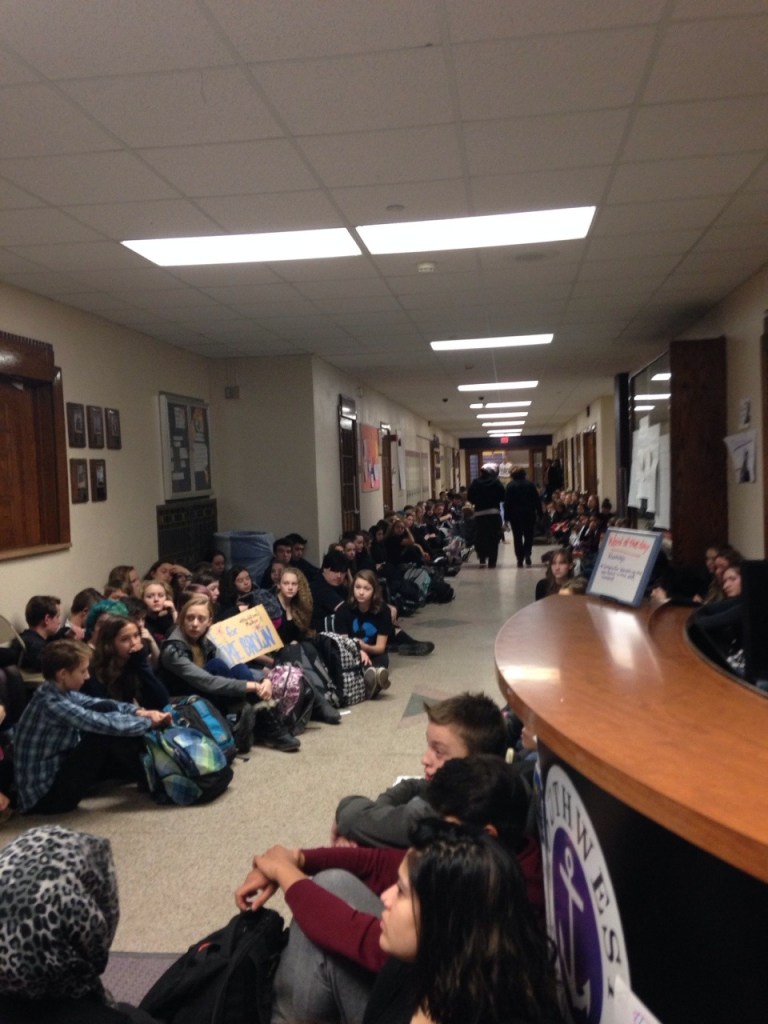 I spoke with students from this school prior to the rally at the University of Minnesota, Twin Cities and they said that not only did their principal/administration know this was going to be happening, but they had the floors washed, too, knowing students would be sitting and laying down on it.
