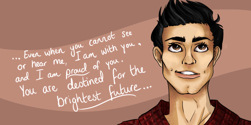 Based on the headcanon that John has a little voice recording from their mother that she sent to him not long before she died. She sent it to him because he was particularly disappointed to find he wasn’t chosen for a junior Nasa space programme when he was 10-years-old, and she died later that year.