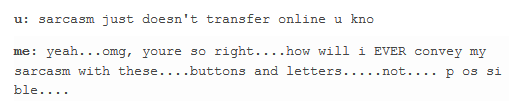 like its not that hard to genuinely say you’re being sarcastic, especially if someone asks, don’t be that dick that’s all “oh no im TOTALLY not being sarcastic at ALL” because that’ll just cause lots of confusion. if someone’s confused just be clear with them jfc