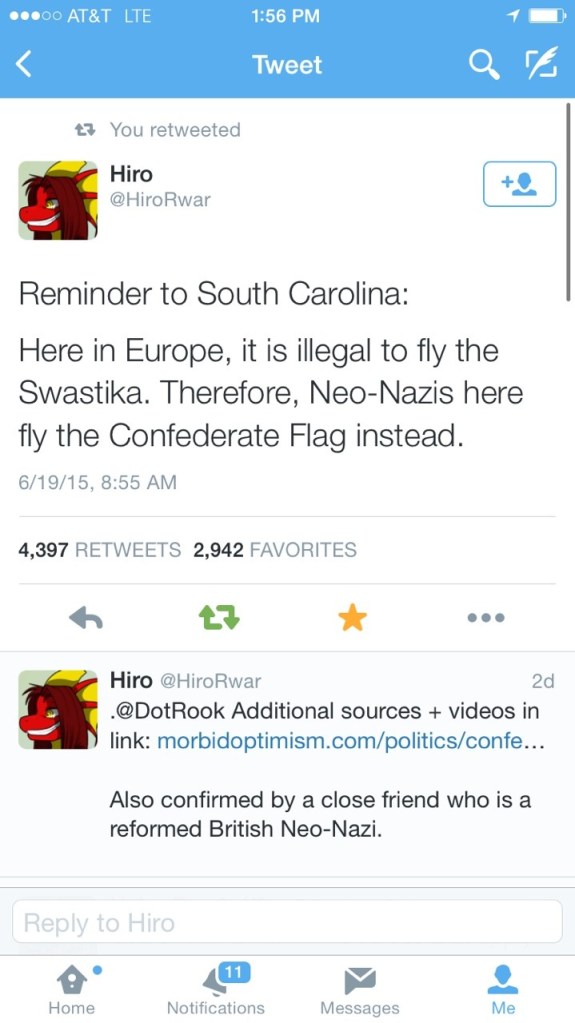 June 25, 2015 Overly Devoted Archivist Uncategorized 0 Comments wolvensnothere: enchanted-dystopia: Well Yeah, I forget people don’t know this. I feel bad that I genuinely didn’t know what the Confederate flag was until quite recently. It’s just not really on the radar in Britain, I guess.Share this: Share on X (Opens in new window) X Share on Facebook (Opens in new window) Facebook Like this:Like Loading...