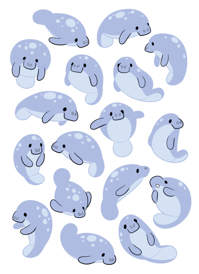 Was attempting to do some simple designs for stickers or t-shirt patterns maybe, but now I’ve been fiddling with colour options for way too long and can’t trust my own eyeballs. At this moment I’m liking the plain white squishies the best.