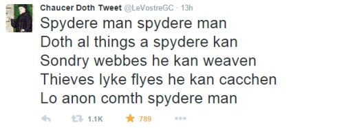 July 21, 2015 Overly Devoted Archivist Uncategorized !, spiderman 0 Comments solarbird: dharmagun: be he stronge? list ye, budde he hath straunge chymerical blod! swyngeth he from a thred? cast thine eyn ouverhedde god wot! anon cometh spydere man GENIUS. ABSOLUTE FUCKING GENIUS. Share this: Share on X (Opens in new window) X Share on Facebook (Opens in new window) Facebook Like this:Like Loading...