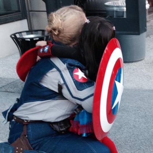 And her parents were SO HAPPY that she got to have her picture taken with a Captain America. Particularly a female one, because Cap was her favourite character and all.