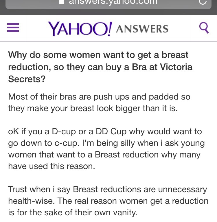 “The real reason women get a reduction is for the sake of their own vanity.”