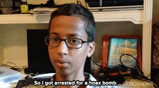 Ahmed Mohamed, a 14-year-old Muslim student was arrested at his high school in Irving, Texas, after bringing a homemade clock to class, which school officials mistook for a bomb. Mohamed showed his engineering teacher first, but when the alarmed went off later in the day, that’s when the trouble started.