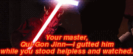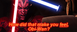 unfazed by Obi-Wan’s possession of the high ground, Maul attempts to practice Rogerian psychotherapy, with mixed success