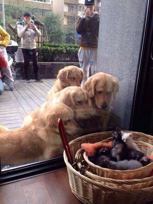 *humans stop what they’re doing to watch dogs watching kittens**tumblr users stop what they’re doing to watch humans watch dogs watch kittins*
