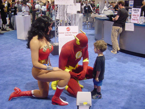 “This kid had lost his dad in the crowd, and freaked out until he saw the Flash and Wonder Woman. He went up to the Flash to ask for help, because he knows him.”
