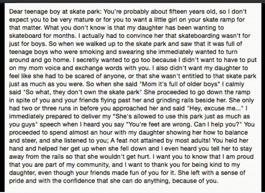 The guy’s response? “I wanted to see her leaving wanting to skateboard again.“