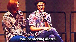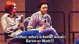 Arthur, we all know you had to kiss Karen, because she was your wife, but there were a couple instances where you kissed Matt Smith. So my question is, who’s the better kisser? [x]