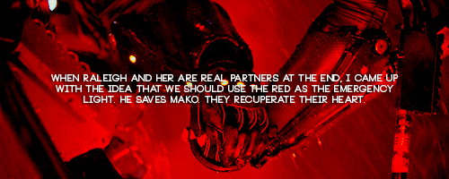 “It’s really about trying to tell the story with something else than the screenplay and the dialogue. When you’re dealing with a genre movie and you’re working with types, you need to deal with them and tell the story in a very simplified and very effective manner. And I try to do it with design, gestures and colours. These things are the things that I lay down in every movie and I hope people notice that they’re there.” – Guillermo del Toro