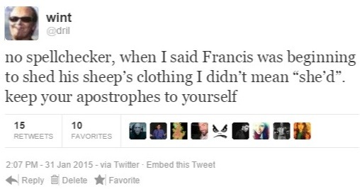 December 21, 2015 Overly Devoted Archivist Uncategorized same 0 Comments drilpencils: alegbra: i’ve discovered that if you put @dril’s name on richard dawkins tweets they actually make more sense OH MY GOD I THOUGHT THIS WAS REAL. shit you got me too Share this: Share on X (Opens in new window) X Share on Facebook (Opens in new window) Facebook Like this:Like Loading...