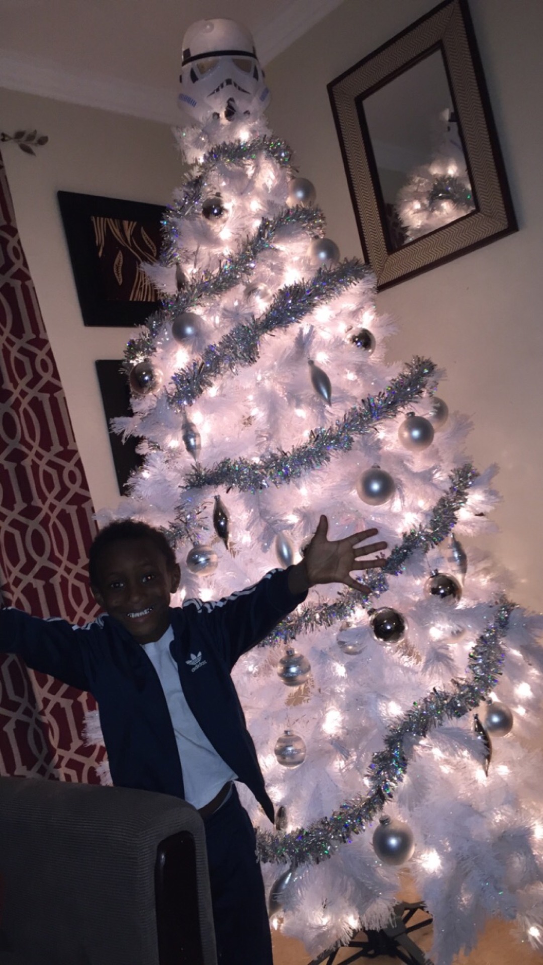 After hours spent in target he decided he wanted a fancy tree and then topped it with Finn
