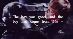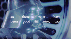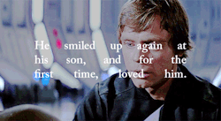 “But he wanted to make it all right for Luke, he wanted Luke to know he wasn’t really ugly like this, not deep inside, not altogether. With a little self-deprecatory smile, he shook his head at Luke, explaining away the unsightly beast his son saw. ‘Luminous beings are we, Luke – not this crude matter.’”