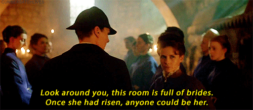 January 2, 2016 Overly Devoted Archivist Uncategorized sherlock, this was a pretty good bit 0 Comments cumberbatchlives: Look around you, this room is full of brides. Once she had risen, anyone could be her. Share this: Share on X (Opens in new window) X Share on Facebook (Opens in new window) Facebook Like this:Like Loading...