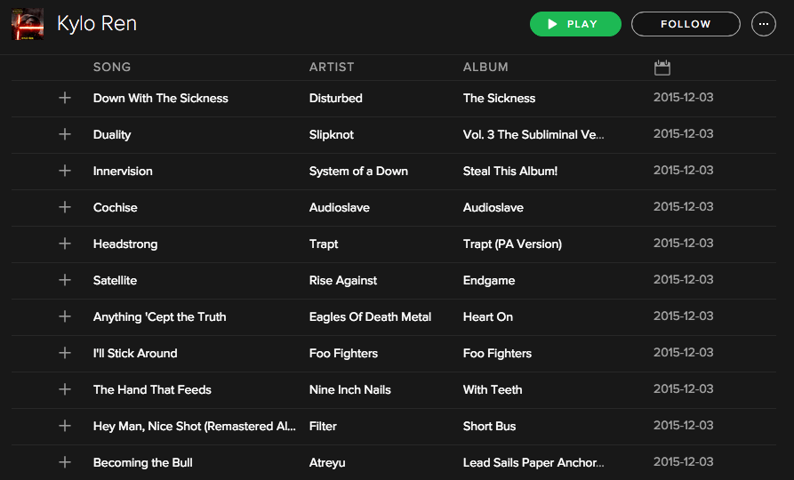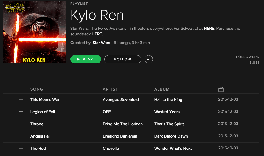 can we talk about how the Official Star Wars Spotify released this emo ass playlist