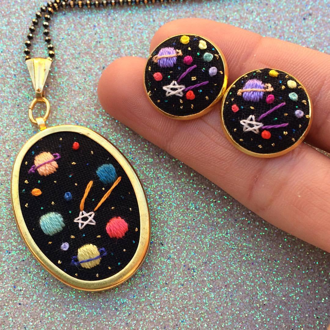 I only have 2 of those space necklace (before holidays arrival guarantee) until late november-december!! Those gone really fast, i’ll restock more of these i promise. Also a little reminder, if you’re going to purchase something from my shop as a gift for holidays/ new year, you should place your order before 10 November since the items are made to order and shipping takes a little while🌚☄🌟☄🌝 #embroidery #handembroidery #etsy #etsyseller #space #galaxy #cosmos #fiberart #wearableart #jewelry #vscocam #baobaphandmade