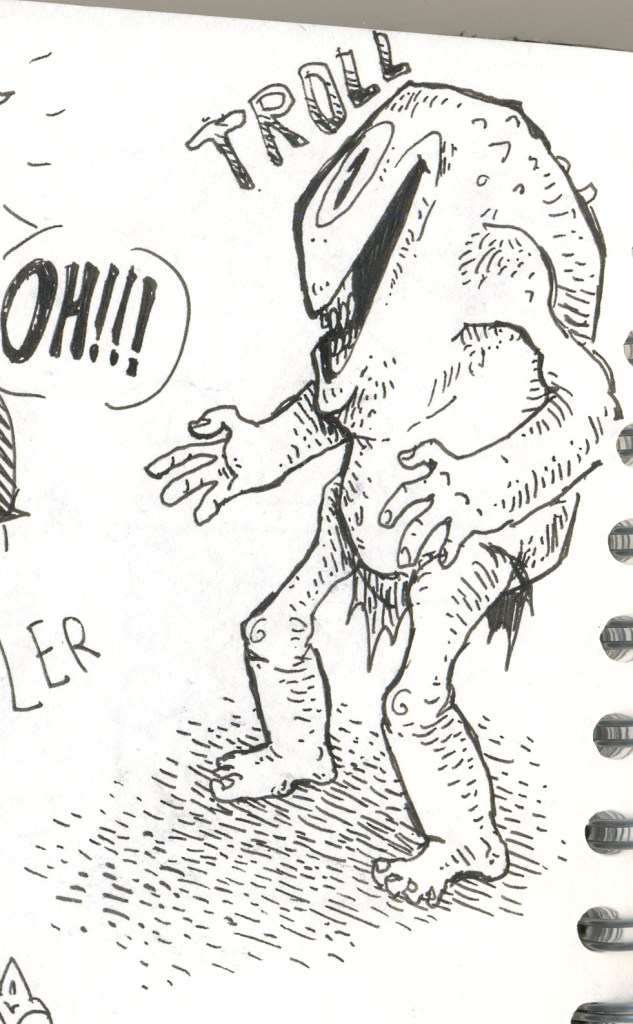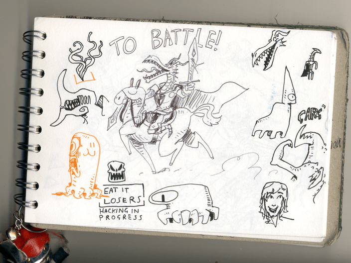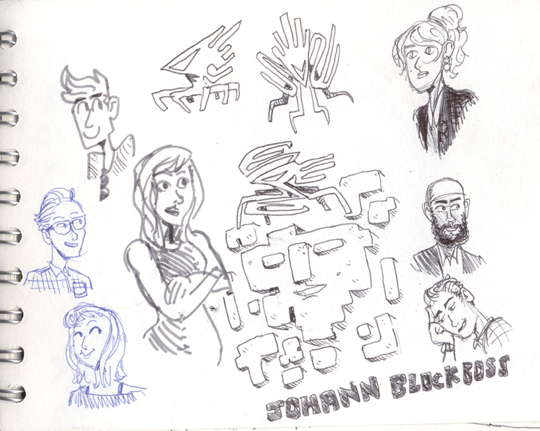 It’s 2016! Here’s a blummin’ massive sketch-a-palooza, pilfered from my tiny travelling sketchbook. SOME of these sketches are being turned into larger pieces, but I shan’t tell you which. Also visible is my little yarn Mazinger keyring, bought in Chester town centre, and now a constant companion