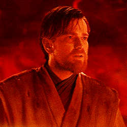 Even though Obi-Wan is fully aware that Anakin is not the person he once knew anymore, i think this is the moment he can really see all the hate in his former padawan’s eyes. This is the first time he truly sees Vader and he is scared. It is the first time he can really see the dark side of the force. He realizes that he is not facing Anakin here, he is facing the dark side. Obi-Wan faced it once before when he faught Darth Maul. But this time it’s different. This time the dark side is wearing the face of his brother. Anakin is now merely a vessel to the dark side of the force, an empty shell. Everything Anakin once was is either being repressed or is fully gone. Obi-Wan tried to figure out what it is during the fight and now he is convinced that it is the latter. Here he experiences first hand what the dark side does to a person and he is not only scared, he is terrified.