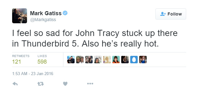January 26, 2016 Overly Devoted Archivist Uncategorized john tracy, mark gatiss, omg, thunderbirds 0 Comments drfitzysimmons: Turns out pretty much all of us are Mark Gatiss Share this: Share on X (Opens in new window) X Share on Facebook (Opens in new window) Facebook Like this:Like Loading...