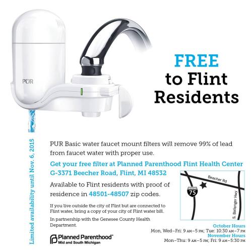 Planned Parenthood is giving out FREE water filters to Flint residents.