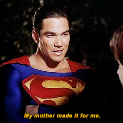 #this is important to me #the things about the suit that ZS wanted to focus on in the movie may have been interesting in another context but I prefer this #it’s the symbol of his genetic origins but made by his chosen mother #and he’s so. proud. #men everywhere are scrambling around to cut any possible symbolic apron strings to their mothers out of fear #of being called un-masculine and having too close a relationship with a non sexualised woman (ewww mummy’s boy!) #whereas Clark? he’s just ‘great huh? my mum made it for me!’ at the smallest opportunity #and see that dean cain one? he’s literally saying it to a villain who’s mocking him #and instead of denying it or even just not mentioning it – he’s just ‘well shows what you know bc MY MOTHER made it for me’ #like that pretty much settles it for him #BLESS.