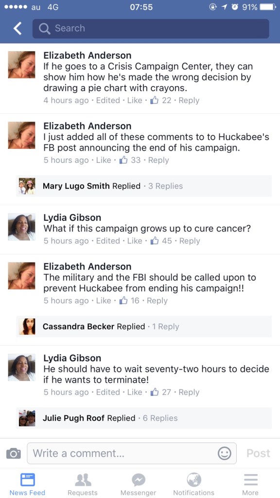 February 9, 2016 Overly Devoted Archivist Uncategorized omg 0 Comments trumpeteer34: shrewreadings: proudly-pro-choice: probodilyautonomy: officialclinicescort: prochoice-or-gtfo: Mick Huckabee has decided to withdraw from the Republican presidential race. The good people over at RH Reality Check on Facebook had some amazing responses. IT GOT BETTER IM SCREAMING THIS IS HILARIOUS!!!!! NO😂😂😂 -Allie ROFLMAO this is the best. Share this: Share on X (Opens in new window) X Share on Facebook (Opens in new window) Facebook Like this:Like Loading...