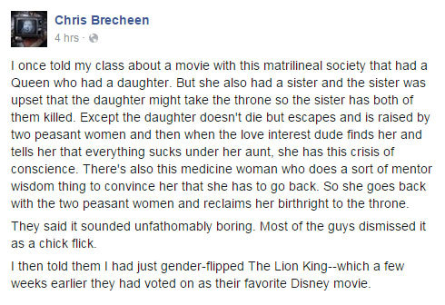 February 13, 2016 Overly Devoted Archivist Uncategorized ha, sexism, the lion king 0 Comments fierce-femme: makinaro: This guy consistently spits the greatest wisdom. Point. Share this: Share on X (Opens in new window) X Share on Facebook (Opens in new window) Facebook Like this:Like Loading...