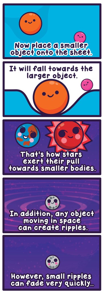 This was the best way to give a general explanation. I’m still trying to understand exactly what we can get from knowing gravitational waves exist but still cool.
