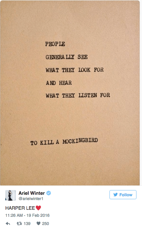 February 19, 2016 Overly Devoted Archivist Uncategorized harper lee 0 Comments entertainmentweekly: Celebrities react to Harper Lee’s death Everyone is taking to Twitter to pay their respects. Share this: Share on X (Opens in new window) X Share on Facebook (Opens in new window) Facebook Like this:Like Loading...