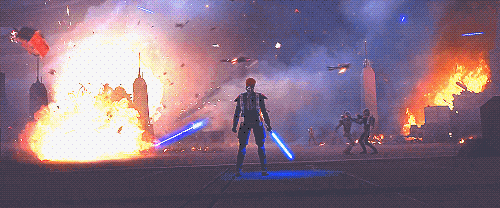 “The moment in Season 5 when Obi-Wan is trying to get off Mandalore, and that huge set of doors opens in front of him to reveal the world going to hell. There is this absolutely stunning shot of Obi-Wan silhouetted against the unfolding chaos, explosions and carnage and disaster, and it’s just so powerful and I feel so taken hold of, because it’s just – Obi-Wan has been trying so hard; he is always trying so hard, and when the world get darker he just tries harder, and when the dark outpaces him he runs faster, but this is just overwhelming; the immensity of the disaster really hits you right there. The terrible, inescapable, destructive force of war. Obi-Wan alone, illuminated against a backdrop of death and destruction, watching an onrushing tidal wave.” (via panharmonium ) (x).