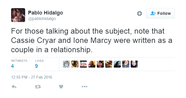 Pablo confirms that the two alien thieves who stole Ahsoka’s lightsaber were lesbians.