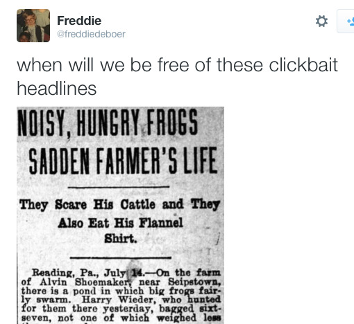 March 5, 2016 Overly Devoted Archivist Uncategorized 0 Comments glumshoe: soggypotatoes: @glumshoe I really want to know how these frogs supposedly ate a flannel, partly out of incredulity, but mostly I need to know how to protect myself. Share this: Share on X (Opens in new window) X Share on Facebook (Opens in new window) Facebook Like this:Like Loading...