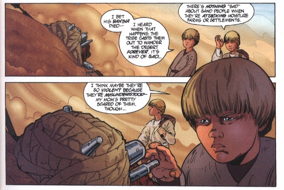 Anakin Skywalker was born in slavery yet despite hardship of life, he was very sensitive to the suffering of others, including rats, droids and (hated by everyone) Tusken Raides. I know that some people bash prequels and little Anakin, but seriously this is a kid who one day became Darth Vader. Think how many things went wrong for this kind, caring boy to change into merciless lord of Sith.