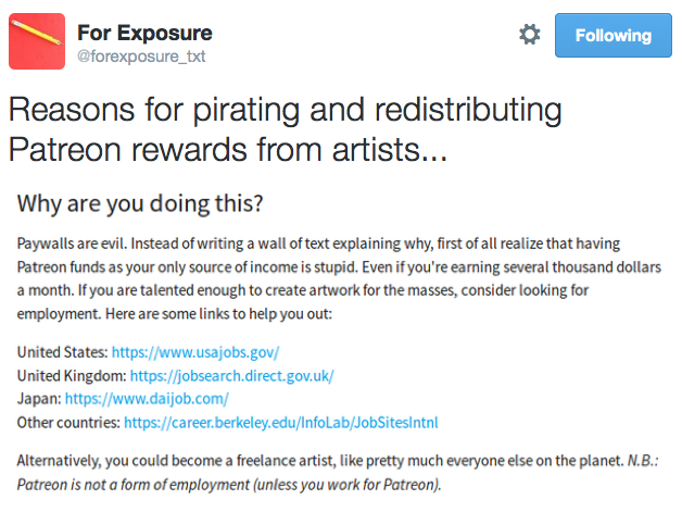 I don’t get why some people think they can dictate what a creator does with their own patreon :TCapitalism Stage V: even entrepreneurs are now entitled lazy-asses who don’t deserve income or respect