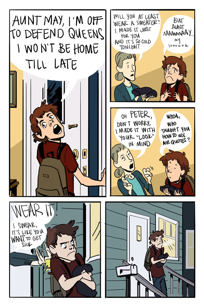 March 12, 2016 Overly Devoted Archivist Uncategorized aunt may parker, peter parker, spiderman 0 Comments wackd: hannahblumenreich: aunt may does right by her nephew. oh my god this is adorable Share this: Share on X (Opens in new window) X Share on Facebook (Opens in new window) Facebook Like this:Like Loading...