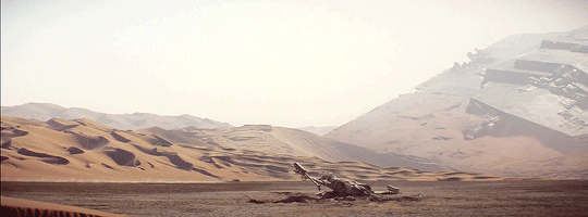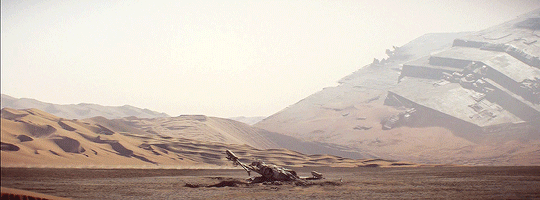 #i love this so much #it’s brutal and monumental #suddenly those ships are brought down inside a landscape that we can instinctively measure and size up #unlike in space where the lack of recognizable markers make size something abstract #and they’re huge behemoths fallen down #bigger than the landscape #can i even call them ruins? #much feelings are being have #they need an entire essay to be expressed (via alyyks)