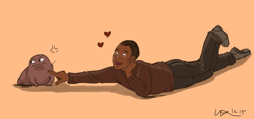 March 20, 2016 Overly Devoted Archivist Uncategorized awwwww, finn, star wars 0 Comments angrygirlcomics: I just have this idea that Finn would somehow find an orphaned Huttlet and befriend it even tho everyone else is like “don’t bother it’s criminal just like the rest of its kind” but Finn is willing to take a chance on it since he was a Stormtrooper Share this: Share on X (Opens in new window) X Share on Facebook (Opens in new window) Facebook Like this:Like Loading...