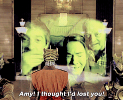 Forget that he never would. Forget the fact that he wears his love for Amy on his sleeve. These things aren’t rational. That’s shown so evidently in the second gif. Amy’s insulting herself for wanting someone to care for her. She’s shutting herself down for considering that someone would want to look after her. Amy’s most critical of herself, and this is one of her weakest points. She so desperately wants someone to prove that she matters, but when they do she can’t believe it. She has to keep her sarcasm. She has to stay strong. Because what if she let the Doctor in and he rejected her? What if he asked her to say and he told her she was clingy? That would be the end. That would break her beyond repair.