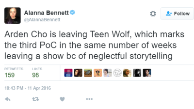 @booasaur commented in another reblog: By the way, if people have twitter, THANK YOU ARDEN is trending worldwide right now 32.6K tweets. It’d be great to add to that support. She was always very outspoken about diversity and the difficulties of being a PoC actor. And remember, there’s a [trend for Abbie tomorrow] as well.
